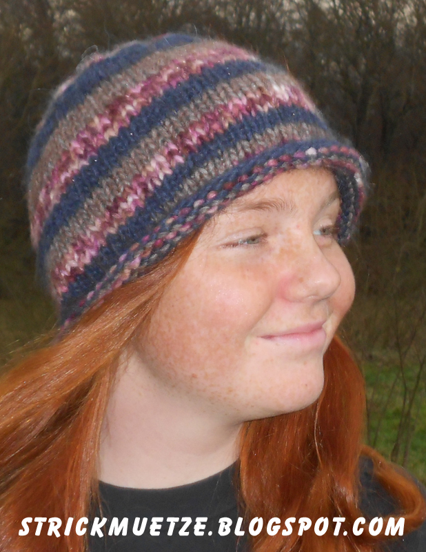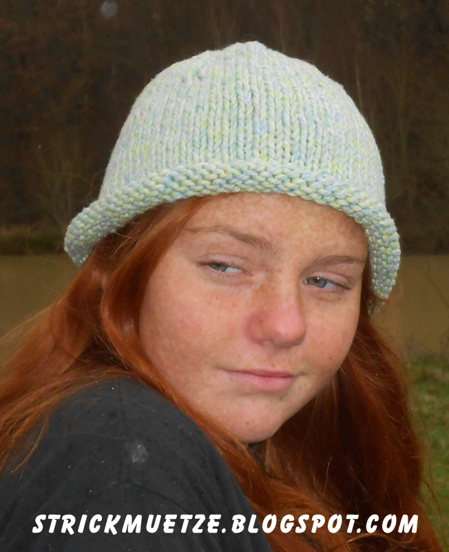 Das besondere an dieser Mütze ist, wie der Name schon sagt, der aufgerollte Rand. Die Mützen sind meist eher kugelförmig. Möglich in allen Farbvarianten, mit Streifen, einfarbig und mit verschiedenen Wolltypen (Effektwolle, normale Wolle, etc.)